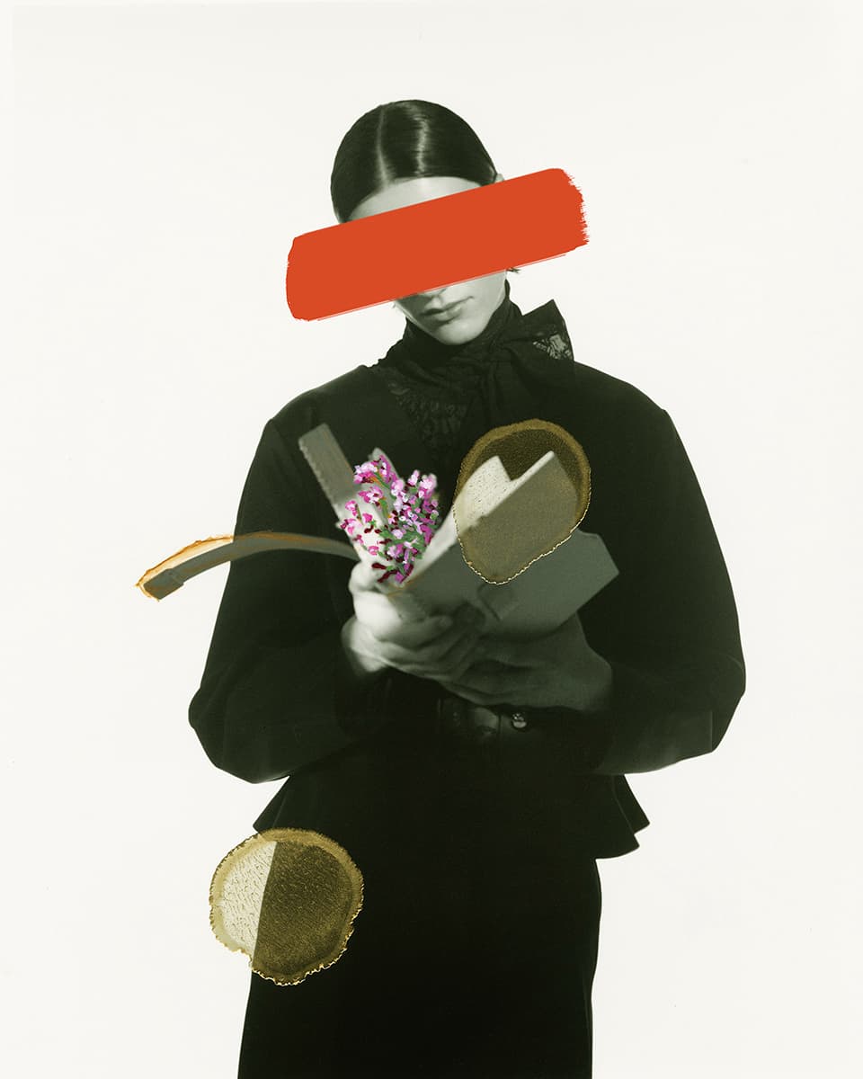 The work examines the tension between monochrome flesh and coloured artefacts, revealing a shifting dialogue between body and knowledge, vessel and content. Gestures such as carrying, gripping, unfolding, or holding become material forms of reading—echoes of historical book actions translated into contemporary image-making.